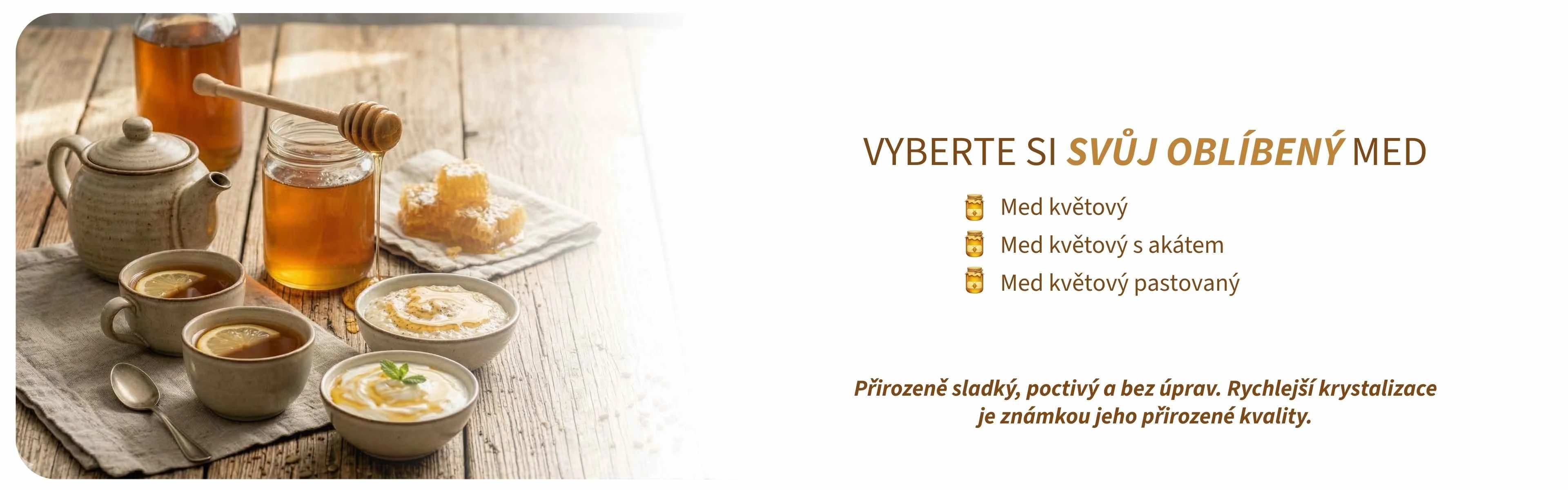 Tradiční květový med s plnou chutí a jemnou vůní květů. Přirozeně sladký, poctivý a bez úprav. Rychlejší krystalizace je známkou jeho přirozen kvality.